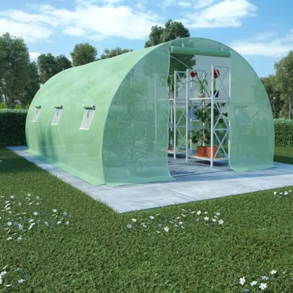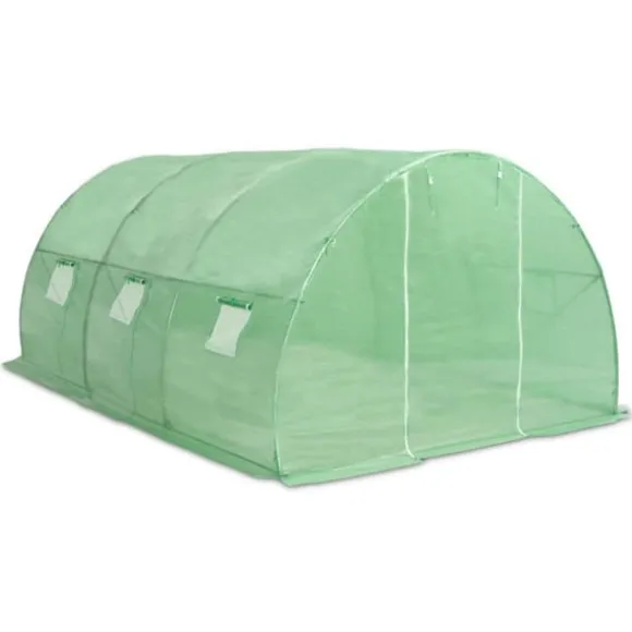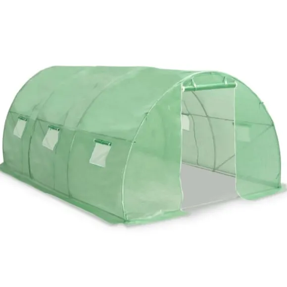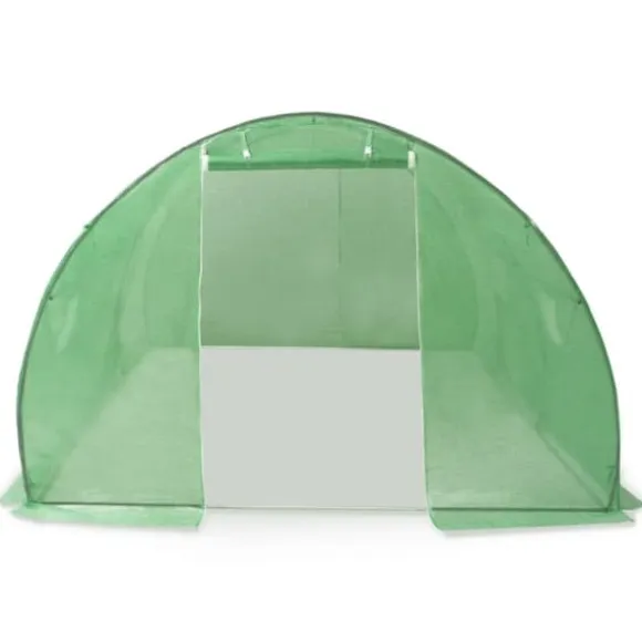 Detta växthus blir en bra lösning för att skydda dina plantor mot vind, regn, sol och skada från fåglar. Växthuset är tillverkat av 140g/m² PE-nättyg som är 25% tyngre än många konkurrenters standard nättyg. Det förhindrar därför påverkan från externa influenser ännu bättre. Växthuset har en stadig och rostfri galvaniserad stålram för extra stabilitet. Växthuset är utrustat med sex fönster på 38×38 cm för ventilering samt en dörr på 100×185 cm.