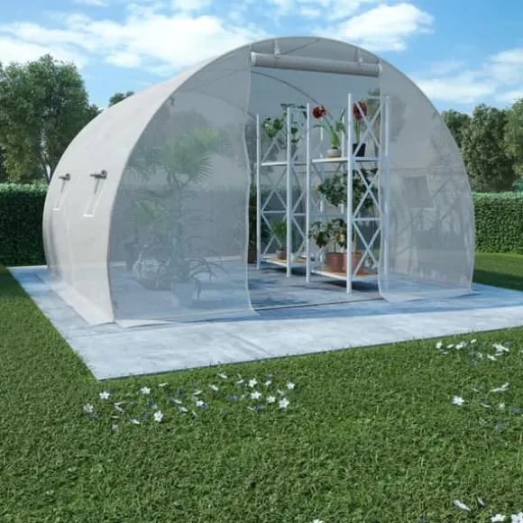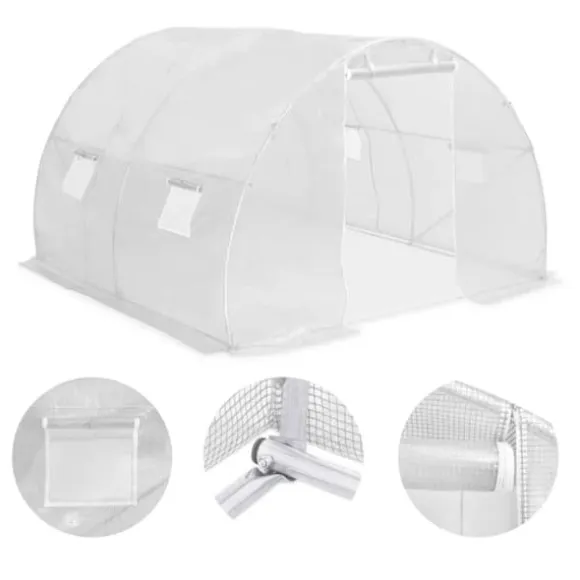 Detta växthus blir en bra lösning för att skydda dina plantor mot vind, regn, sol och skada från fåglar. Växthuset är tillverkat av 170g/m² PE-nättyg som är 25% tyngre än många konkurrenters standard nättyg. Växthuset har en stadig och rostfri galvaniserad stålram för extra stabilitet. Växthuset är utrustat med fyra fönster på 38×38 cm för ventilering samt en dörr på 100×185 cm.