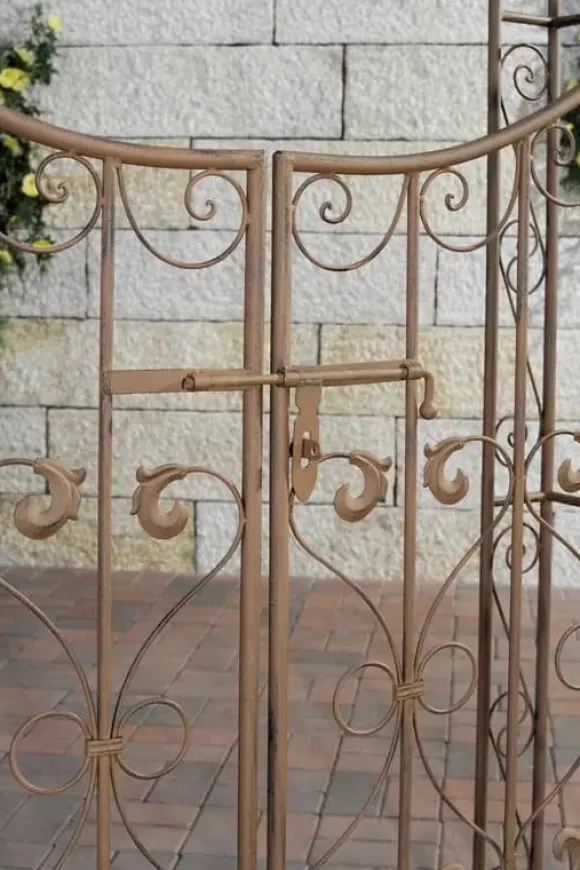 This exclusive rose arch is ideal for creatively designing your garden. It is a real eye-catcher in any garden, either free-standing or overgrown with the two lockable and beautifully decorated gate leaves. The ”SINA” model is handmade from very stable iron tubing. It is assembled from just a few parts, guaranteeing easy setup and immediate use. A coating makes this climbing aid very high-quality and extremely durable. The intricate decorations are not only beautiful, but also offer your climbing plants plenty of room to climb. Dense growth is thus ensured.