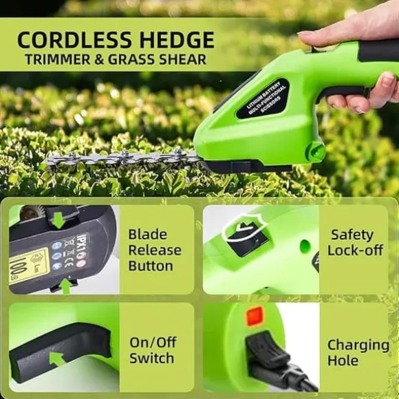 2-i-1 Trådlös Häcksax & Gräsklippare – Lätt, Ergonomisk & Säker – För Buskar, Gräs, Kantklippning