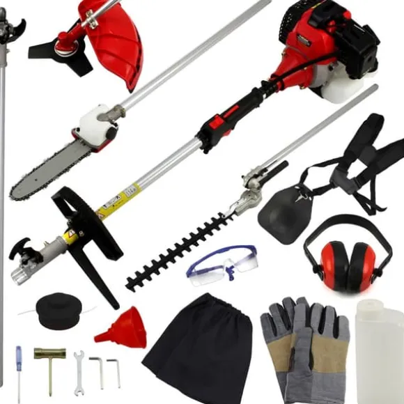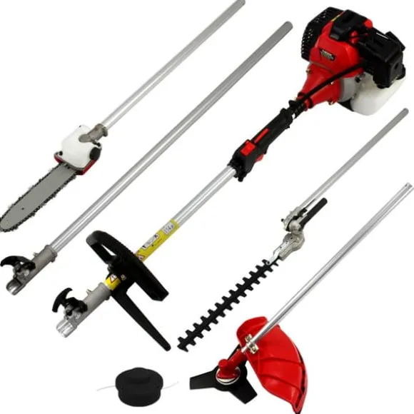 5 multifunktionella tillbehör gör att du enkelt kan anpassa verktyget för att passa det aktuella jobbet. Bestående av en häcksax, motorsåg, grästrimmer, röjsåg och en praktisk 100 cm förlängningsstång, gör detta multiverktyg verkligen allt.