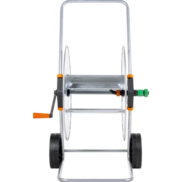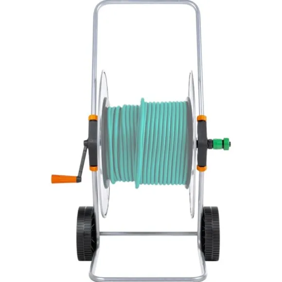 - Förvarar upp till 110 m 1/2″ eller 80 m 3/4″ trädgårdsslang