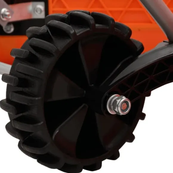 - Halkfria hjul: Mönstret på hjulen ökar snöplogens friktion och säkerställer säkerhet när du skottar hala vägar. Hjulen gör att arbetet går snabbt och tyst.