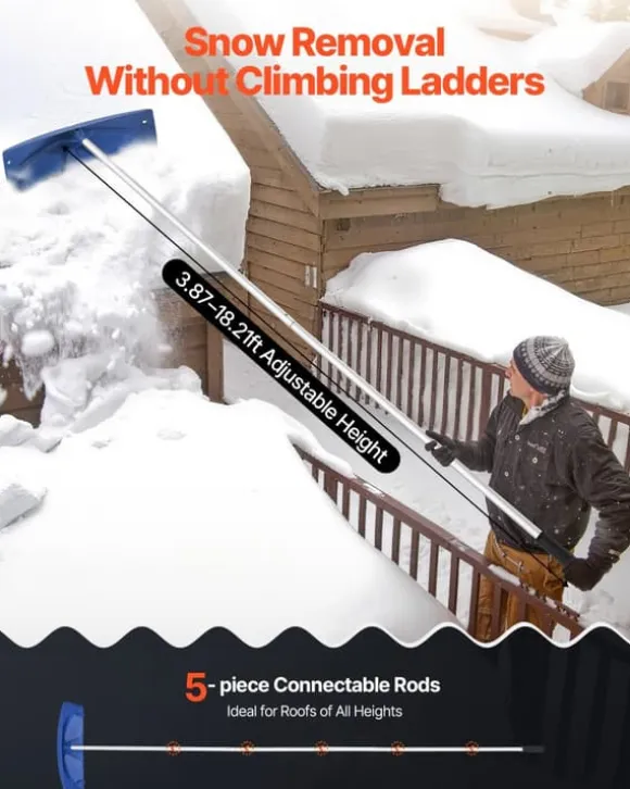 Effektiv taksnökratta med extra brett blad och justerbar räckvidd Denna takkratta är utformad för snabb och skonsam snöröjning från hustak. Med ett 60 cm brett blad, lätt aluminiumhandtag och skyddande hjul röjer du stora ytor snabbt, säkert och utan stege.
