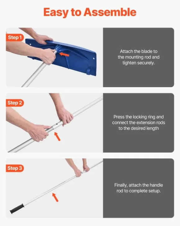 Det extra breda bladet täcker mer yta per drag, vilket minskar antalet tag och sparar tid och kraft. Perfekt för bostads-, garage- och biltak där effektivitet är viktig när snön faller tätt.