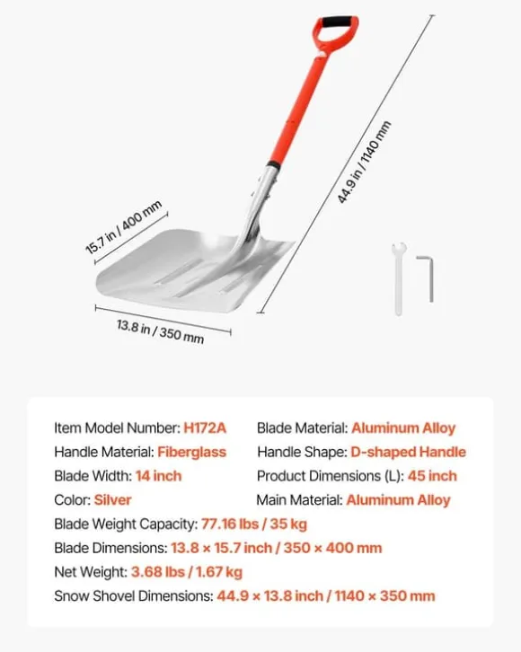 Effektiv snöskyffel för uppfart och resa En lätt men robust snöskyffel som snabbt röjer snö i trånga utrymmen som bilfronter, trappor och gångar. Det höga bladet i aluminiumlegering flyttar mer snö per tag, medan D-handtaget ger bekväm kontroll även med tjocka handskar.