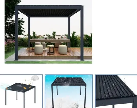 En modern bioklimatisk pergola är en modern och mycket funktionell lösning för trädgårdsaltaner, tillverkad av högkvalitativt aluminium. Automatiskt justerbara taklameller skyddar mot sol, regn och vind och skapar ett naturligt ventilationssystem. Detta ökar komforten i bostads- eller kommersiella utrymmen oavsett årstid eller väderförhållanden.