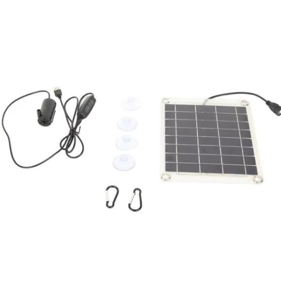Artikeltyp: Solpanels vattenpumpsats Material: ABS bruttovikt: 258g / 9,1oz Solpanel Storlek: Ca. 21,5 x 17,5 cm / 8,5 x 6,9 tum (utan strömlagringsfunktion) Solpanelsström: 10W uteffekt: 5V pumpeffekt: 3W maximalt lyft av vattenpump: 3 meter Paketet inkluderar: