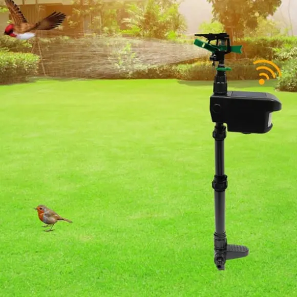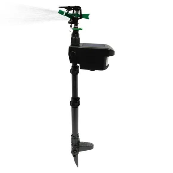 Solcellsdriven djuravskräckande sprinkler – svart Skydda rabatter och gräsmatta effektivt. Denna rörelseaktiverade sprinkler i svart använder solenergi och kranvatten för att skrämma bort djur utan att skada dem. Med justerbara tider och stabil drift vid 3–8 bar passar den perfekt i trädgården.