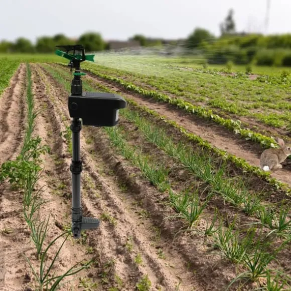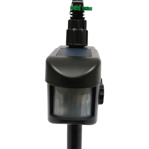 Håll oönskade djur borta från rabatter, grönsaksland och gräsmattor – utan gifter eller stängsel. Den svarta, solcellsdrivna djurskrämmaren aktiverar en kort vattenspray när IR-sensorn registrerar värme och rörelse inom 32,8 ft/10 m och 120°, vilket skrämmer bort inkräktare på ett säkert sätt.