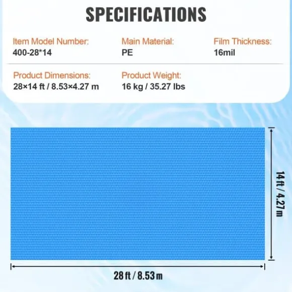 Med en slutna bubbeldesign förhindrar vårt 28 x 14 fot solskydd upp till 95 % av vattenavdunstningen, vilket sparar vattenresurser och minskar behovet av påfyllning. Det tjocka PE-materialet isolerar vattnet effektivt och hjälper till att behålla pooltemperaturen.