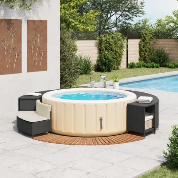 - Multifunktionell: Med ett förvaringsställ, en trätrappa och en trädgårdsbänk skapar denna spa-kant en mer funktionell och användarvänlig spaavdelning.