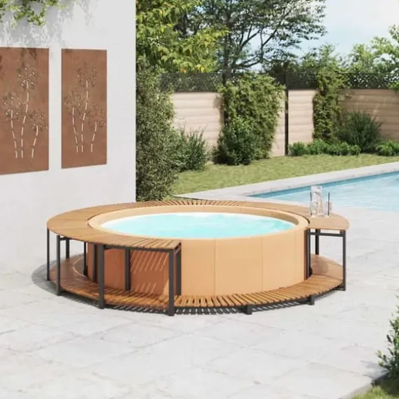 Denna spakant i trä är ett mångsidigt tillbehör till ditt spabad. Det ger spabadet ett elegant utseende och skapar samtidigt ett mer funktionellt och användarvänligt spaområde.