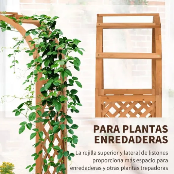 - Planteringslåda i naturträ med båge och två spaljéer