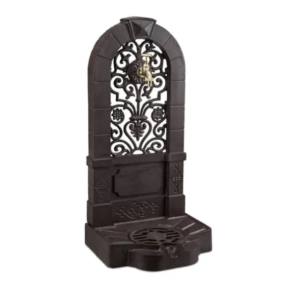 Denna antika ståfontän är perfekt för att ge nostalgisk charm till din trädgård eller terrass. Den har en praktisk kran och skål, ett galler för förvaring av vattenkannor samt en öppen bakpanel för enkel vattenanslutning. Tillverkad av hållbar mörkbrun aluminium, kombinerar den klassisk design med praktisk funktionalitet.