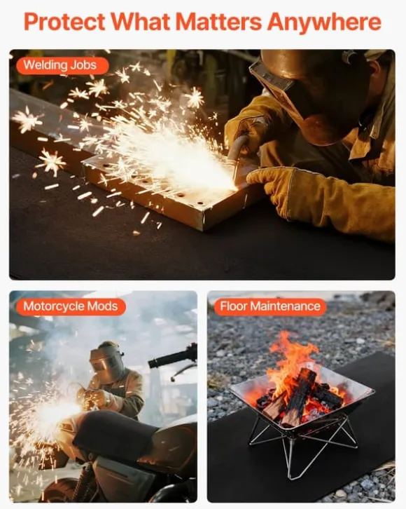 Säkerhet i fler situationer Förutom svetsning passar den vid metallskärning, lödning, grillning och som extra brandskydd vid camping. Skyddar golv, väggar, arbetsbänkar och utrustning.