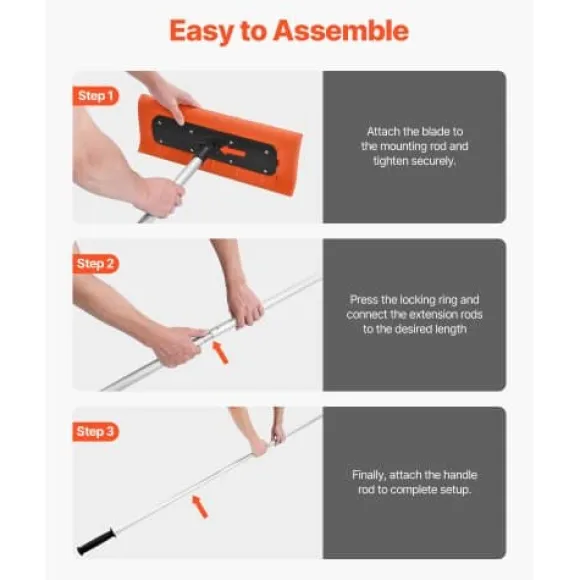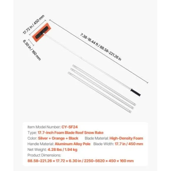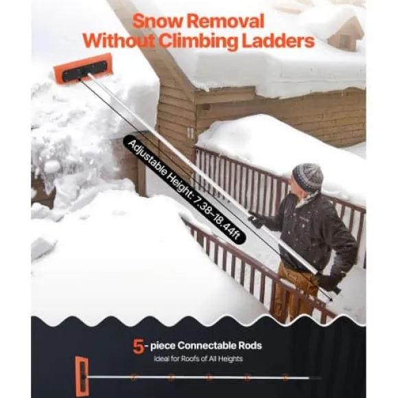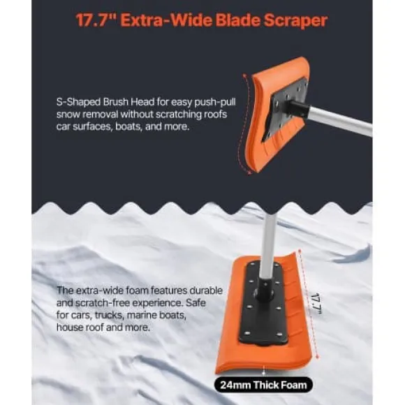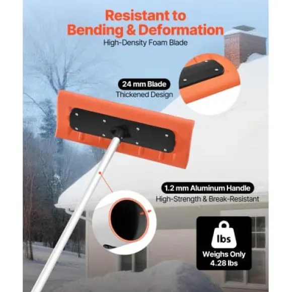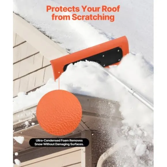 Denna snöraka för tak är utformad för effektiv borttagning av snö, löv och skräp från bostadshus, garage och biltak. Det extra breda skumbladet skyddar takytor från repor, medan det justerbara, lätta handtaget säkerställer bekväm och säker användning utan behov av stege. Verktyget är enkelt att montera och förvara, vilket gör säsongsbetonat takunderhåll problemfritt.