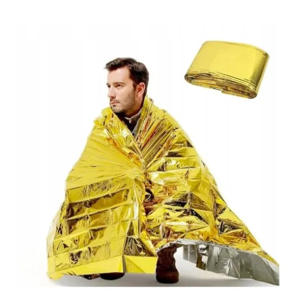 – Skyddar mot livshotande värmeförlust, mot negativa effekter av väderförhållanden (regn, fukt). Signalerar att personen som är täckt med den behöver hjälp.