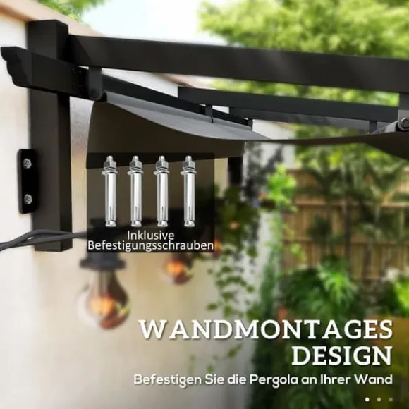 – Väggmontering: Denna väggmonterade paviljong ger din terrass elegant komfort