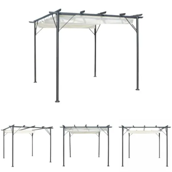 Denna mångsidiga pergola kommer att bli ett dekorativt tillskott till trädgården eller andra utomhusplatser. Tack vare dess infällbara taksystem passar denna pergola perfekt för att erbjuda skugga från solen och skydd från regn.