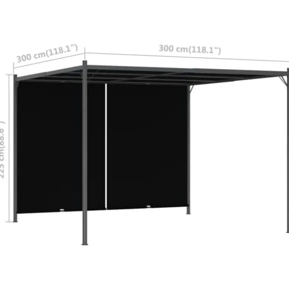 Denna innovativa pergola har ett justerbart, infällbart tak som kan sänkas eller höjas på sidorna med de inbyggda handtagen. Därför kan du själv välja hur mycket sol eller skugga du vill ha. Pergolan är tillverkad i pulverlackerat stål och är väldigt stadig och hållbar. Taket är tillverkat i polyestertyg med PA-beläggning och är vatten- och väderbeständigt. Det kan även tas av för att tvättas och förvaras när det inte används.