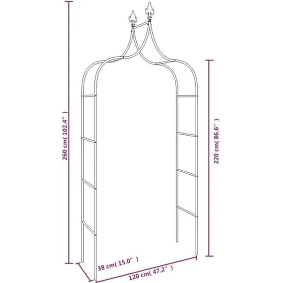 - Robust ram: Trädgårdsbågens robusta pulverlackerade stålkonstruktion är tillräckligt stark för att stötta upp många klättringsväxter.