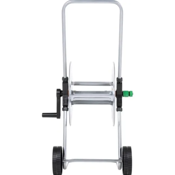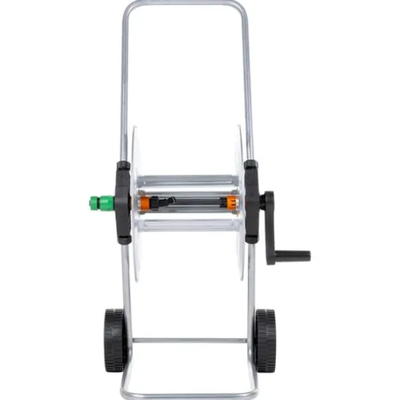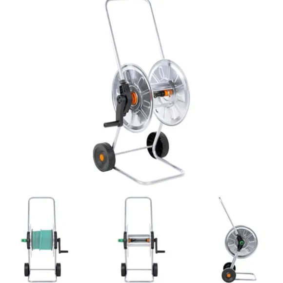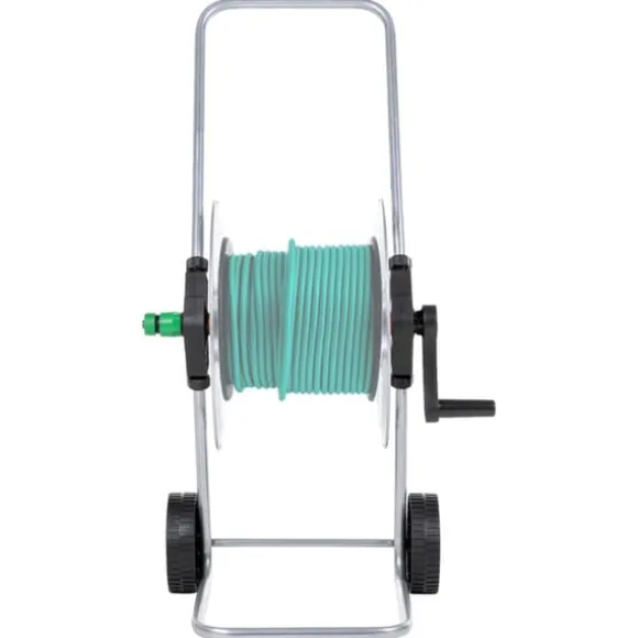 - Lagrar upp till 50 m 1/2″ eller 35 m 3/4″ trädgårdsslang