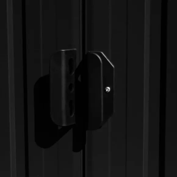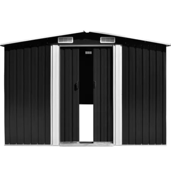 Förvaringsskjulet har ventiler som säkerställer utmärkt ventilering. Dess dubbla skjutdörrar framtill gör det enkelt att gå in och ut. Tack vare den galvaniserade stålkonstruktionen är verktygsskjulet hållbar och starkt och rostar eller påverkas inte av dåliga väderförhållanden.