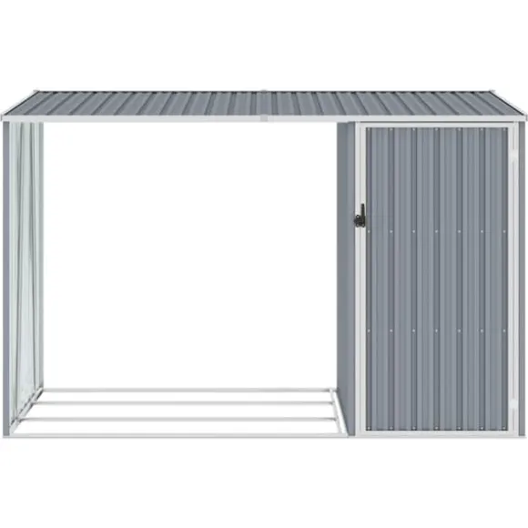Trädgårdsskjulet består av en vedförvaringsplats och ett stort skjul med gott om plats för att organisera dina trädgårdsredskap. Eftersom det är tillverkat i galvaniserat stål kräver det minimalt underhåll och är väldigt hållbart. Regnvatten dräneras automatiskt från taket tack vare dess sluttande design.