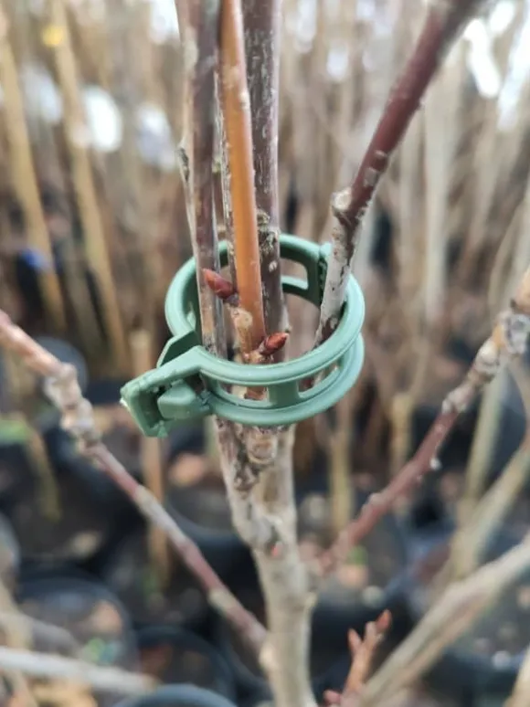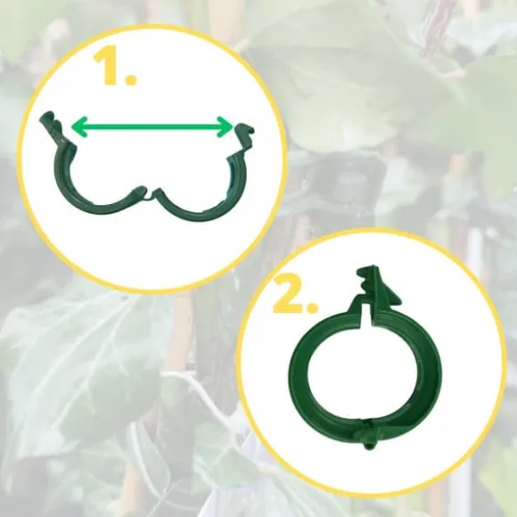 Plastklämmor med en diameter på 22 mm är perfekta för att fästa växter på pålar och stödstolpar.