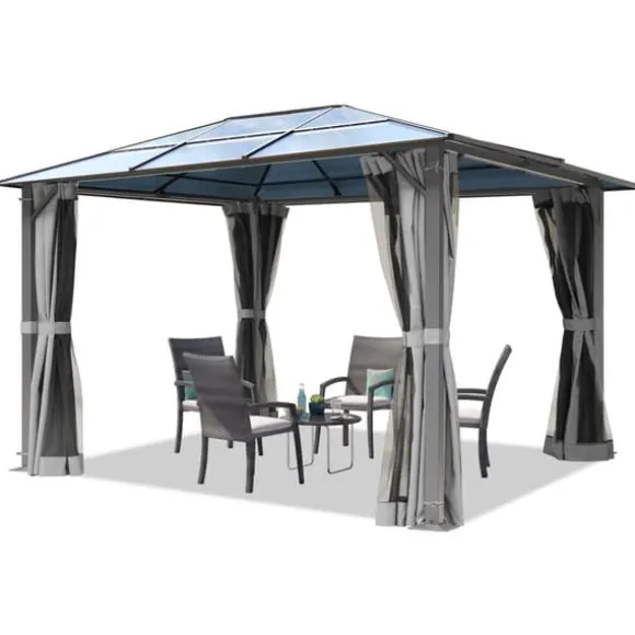 Stilren och modern är de två orden som bäst beskriver trädgårdspaviljongen Moonlight Deluxe. Tack vare den högkvalitativa kombinationen av hardtop-tak och pulverlackerad metall kan denna trädgårdspaviljong fungera som en oas av lugn året runt. Paviljongen inbjuder till avkoppling även sent på kvällen. De medföljande myggnäten gör att insekterna inte har en chans att störa dig.