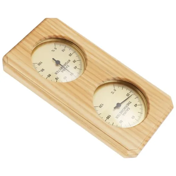 3, Fuktighetskontroll: Denna bastuhygrometer i trä syftar till att upprätthålla den idealiska fuktighetsnivån i din bastu för ökad komfort och kroppshälsa.