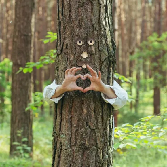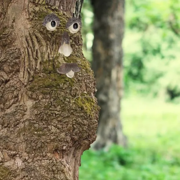 - Placera ansikte, ögon och mun var som helst på trädstammen