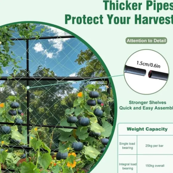 Arbetshöjd som underlättar160 cm ger bekväm åtkomst för uppbindning, skötsel och skörd utan stege – perfekt för både grönsaker och prydnadsväxter.