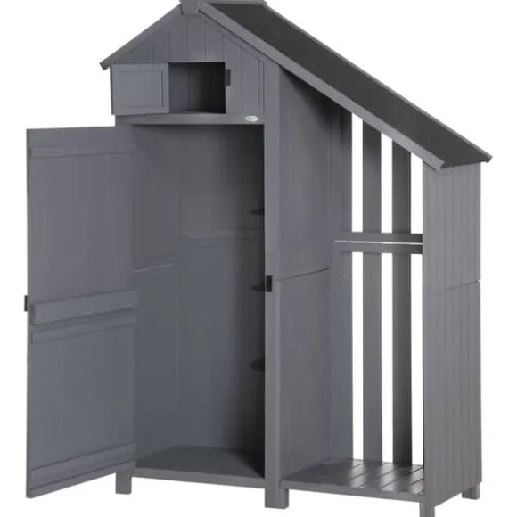 Detta trädgårdsförråd i trä erbjuder gott om förvaringsutrymme för olika trädgårdsredskap och ved, vilket hjälper dig att hålla din utomhusmiljö organiserad. Dess lutande tak säkerställer effektiv vattenavrinning, medan den behandlade massiva träkonstruktionen ger hållbarhet och skydd mot väderförhållanden.