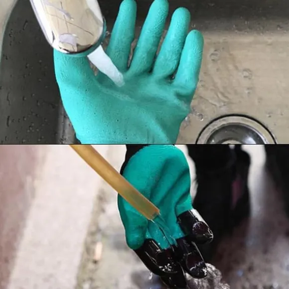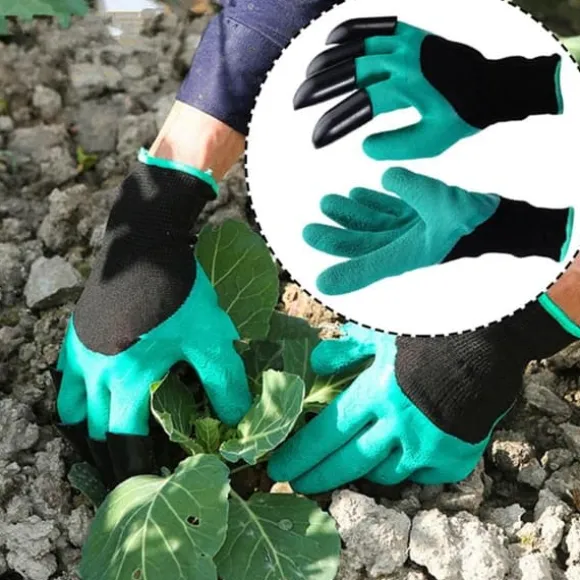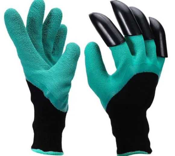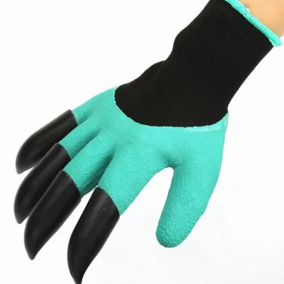 Varför spendera dina pengar på en massa trädgårdsredskap och ett verktygsbälte när du har två fullt dugliga händer? Dessa trädgårdshandskar kommer åt där andra verktyg inte gör det och har dessutom mycket bättre precision. Den kloförsedda högerhandsken är utmärkt för gräv- och jordarbeten. Vänsterhandsken har vanliga, mjuka fingertoppar vilket gör att du kan utföra en mängd olika sysslor utan att ta av dig dem. De latexbeklädda trädgårdshandskarna ger ett bra skydd för dina händer under trädgårdsarbetet. Efter användning kan de rengöras med vanligt vatten.