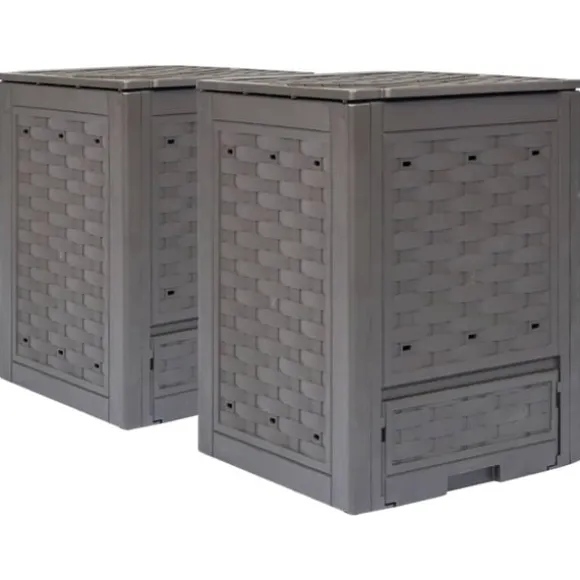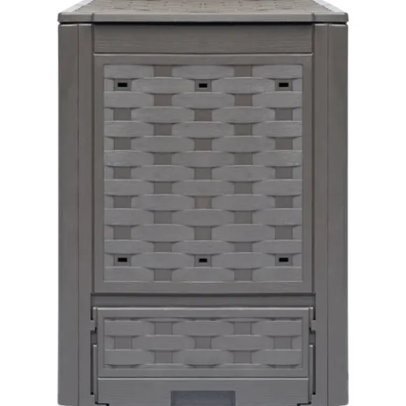 Kompostlådorna är tillverkade i plast som gör dem UV- och väderbeständiga. Enheten har en lätt stomme och ett prydligt utseende. Den har ett delat lock för optimal bevattning och ventilation. Tack vare ventilationshålen på sidodelen kan avfallslådan uppnå optimal kompostering på ett ypperligt sätt. Den fyrkantiga komposten kommer väl till hands vid återvinning och smälter samtidigt fint in i trädgården.