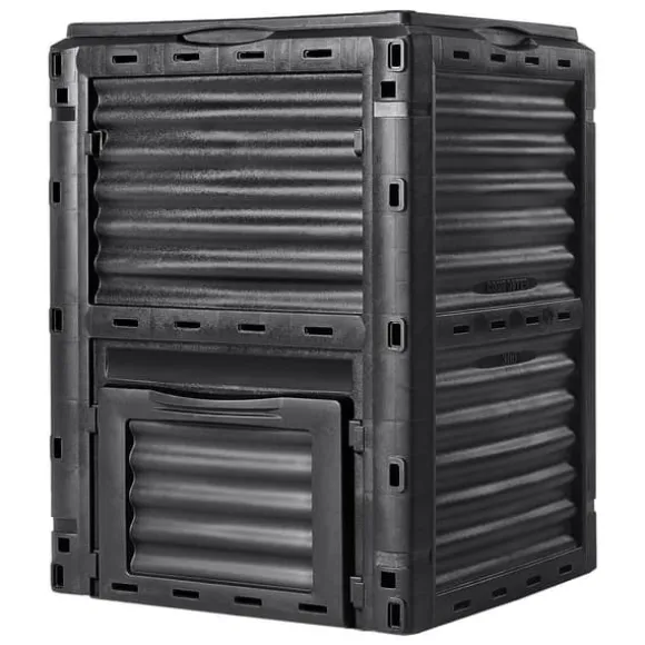 UV-beständigt material: BPA-fri! Använd denna kompostbehållare utan bekymmer. Den tål utomhusförhållanden, även under de kallaste vintrarna. Dessutom lagrar den svarta PP-plasten effektivt värme och reglerar vattnet, vilket påskyndar komposteringsprocessen.