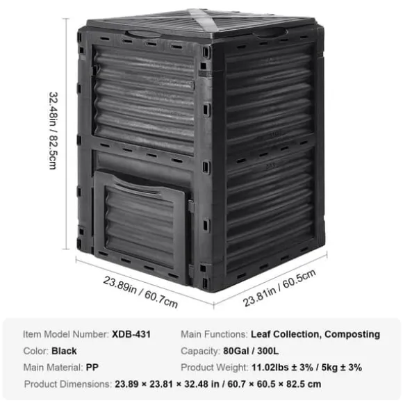 - generös kapacitet: med en imponerande kapacitet på 80 gallon (300 liter) erbjuder denna kompostbehållare gott om utrymme för ditt trädgårdsoch köksavfall, vilket gör den perfekt för miljövänlig kompostering.
