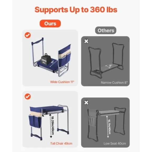 - Stöder upp till 160 kg: Tillverkad av hållbart höghållfast A3-stål och pulverlackerad yta, denna trädgårds-sittplats är robust och stabil. Med en vikt kapacitet på 160 kg är den perfekt för trädgårdsarbete, hushållsarbete och andra aktiviteter med högt stödbehov.