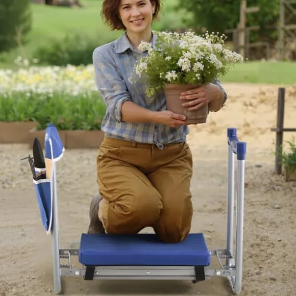 - Lätt att ställa upp: Trädgårdspallen har sidohandtag för extra stöd vid resning i knästående position, vilket är särskilt användbart för seniorer eller personer med nedsatt rörlighet. Halkfria rör i botten säkerställer stabilitet och trygghet under användning.