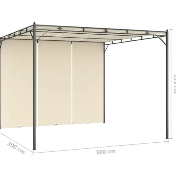 Den har en konstruktion i pulverlackerat stål, som gör ramen hållbar och robust. Soltaket i tyg och sidogardinen skyddar dig mot solen, så att du kan njuta av bättre komfort under dina tillställningar. Dessutom är trädgårdspaviljongen väldigt enkel att montera.