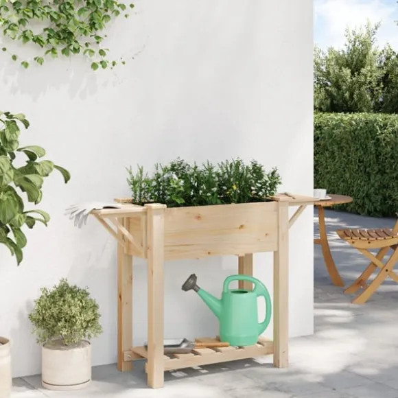 Den här trädgårdsplanter med hylla ger din uteplats en fin blandning av stil och funktionalitet, gjord av solid furu. Med sin minimalistiska stil passar den lätt in i olika trädgårdsstilar och kombinerar snyggt utseende med praktiska funktioner. Perfekt för att lyfta upp din terrass, den rymmer många växter och skapar en vacker grön oas där natur och design möts. Den smälter fint in i utomhusmiljöer och passar perfekt för hobbymakare och de som vill ha en effektiv och snygg lösning för trädgårdsodling.