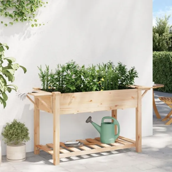 Den här trädgårdsplanter med hylla ger din uteplats en fin blandning av stil och funktionalitet, gjord av solid furu. Med sin minimalistiska stil passar den lätt in i olika trädgårdsstilar och kombinerar snyggt utseende med praktiska funktioner. Perfekt för att lyfta upp din terrass, den rymmer många växter och skapar en vacker grön oas där natur och design möts. Den smälter fint in i utomhusmiljöer och passar perfekt för hobbymakare och de som vill ha en effektiv och snygg lösning för trädgårdsodling.