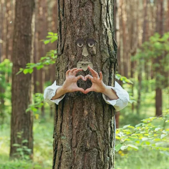 - Placera ansikte, ögon och mun var som helst på trädstammen