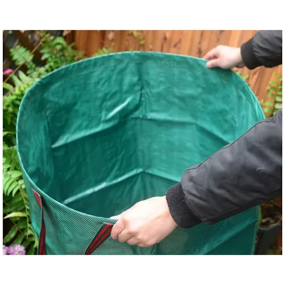 Säcken är tillverkad av starkt och slitstarkt material som är perfekt för tuffa utomhusförhållanden. Den är rivtålig och fuktresistent, vilket gör att du kan förvara ditt trädgårdsavfall säkert utan att oroa dig för dess hållbarhet.