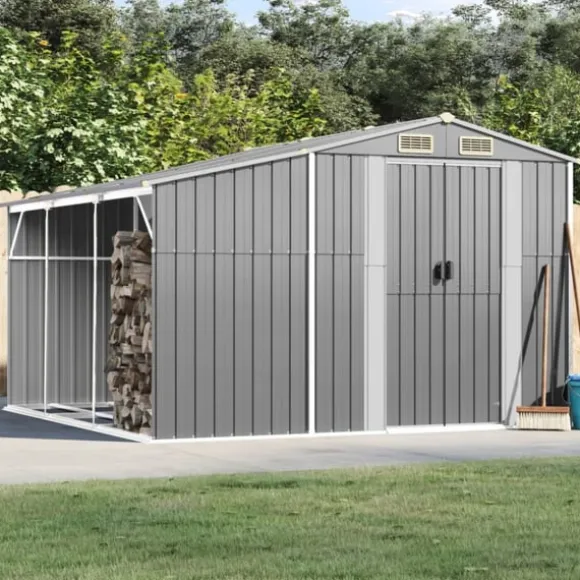 - Gott om förvaringsutrymme: Detta metallskjul med vedställ ger gott om utrymme för att förvara ved, trädgårdsredskap, möbler, utrustning med mera.