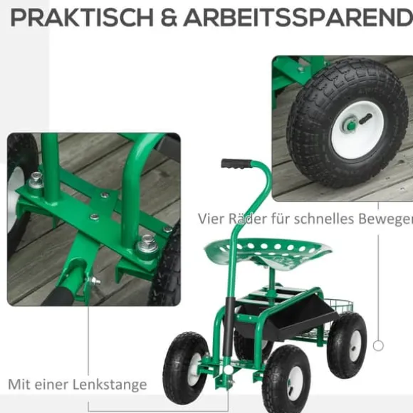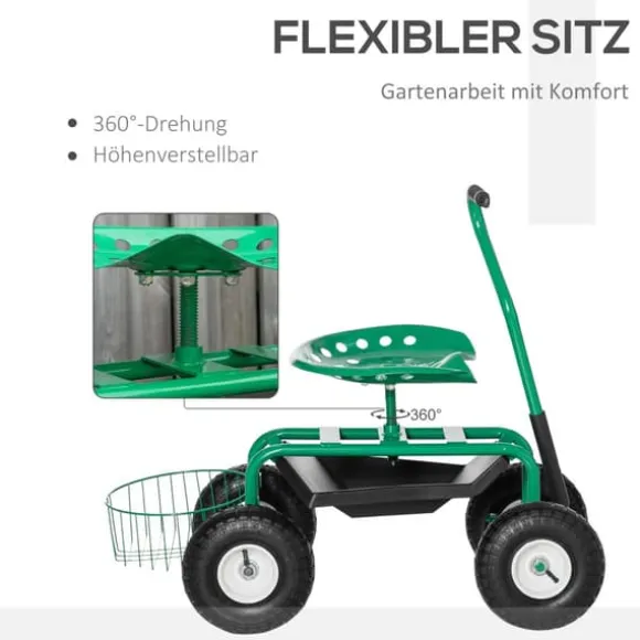 Denna trädgårdsvagn är en oumbärlig hjälpreda för trädgårdsarbete och landskapsplanering, och erbjuder enkel transport av verktyg samt en bekväm sittplats för att ta hand om dina växter. Designad för att avlasta knän och rygg, har den en roterbar och höjdjusterbar sits för personlig komfort. Dess robusta konstruktion och praktiska förvaringsmöjligheter gör trädgårdsarbetet mer bekvämt och njutbart.