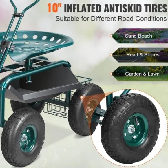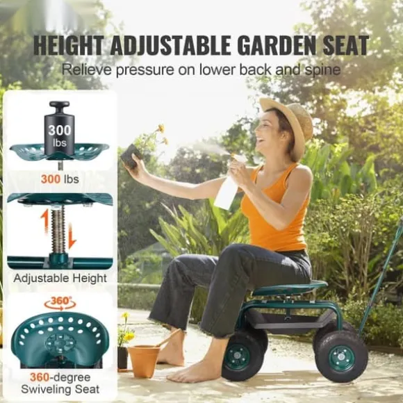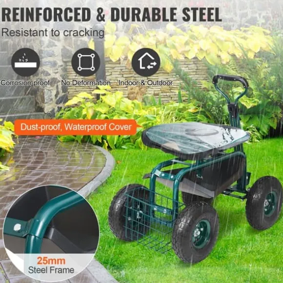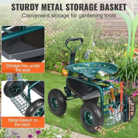 Mycket förvaringsutrymme: Den robusta förvaringskorgen i metall erbjuder gott om utrymme för dina trädgårdsredskap. Den är placerad så att den är lättåtkomlig medan du sitter på rullstolen.