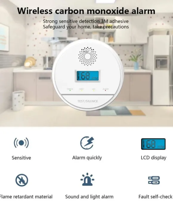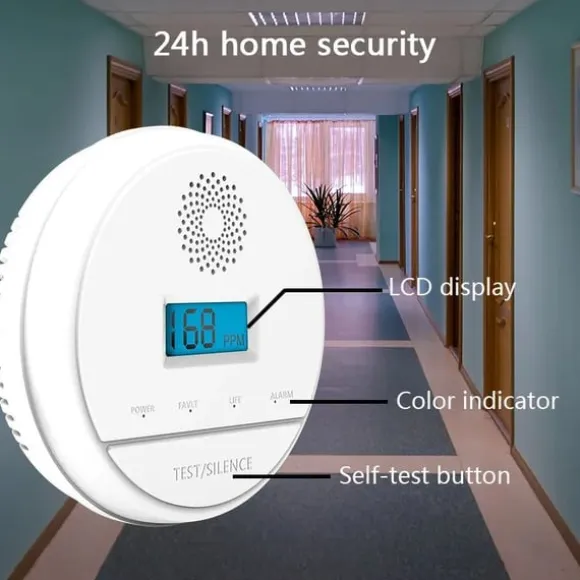 Högt larm: Kolmonoxiddetektorn är utrustad med ett inbyggt 85dB högt larm för att varna dig i händelse av farliga kolmonoxidnivåer, så att snabba åtgärder kan vidtas.